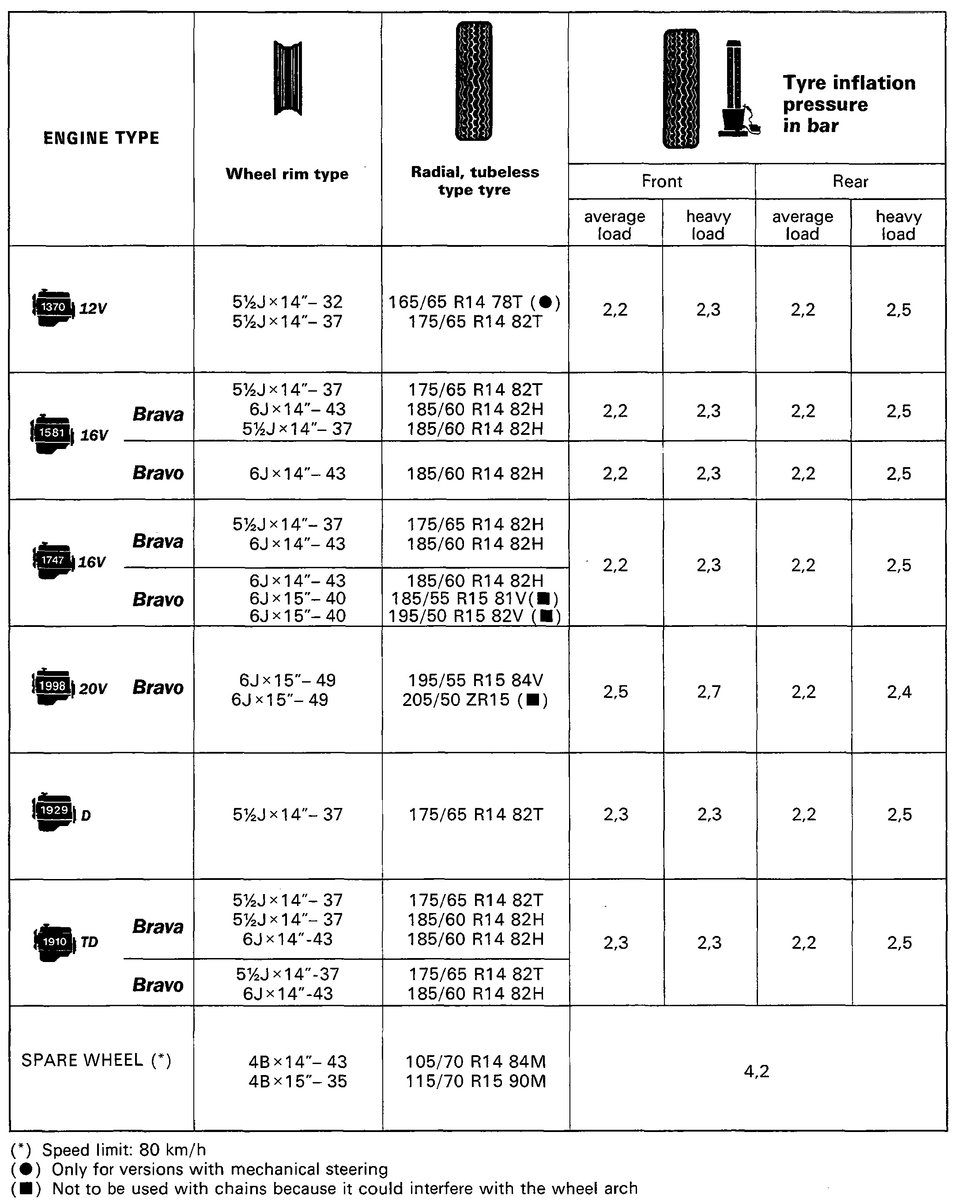 таблица за налягане на гумите